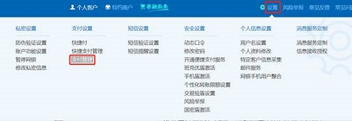 1.登录个人网银,点击“设置”,在“支付设置”菜单下点击“支付管理”。